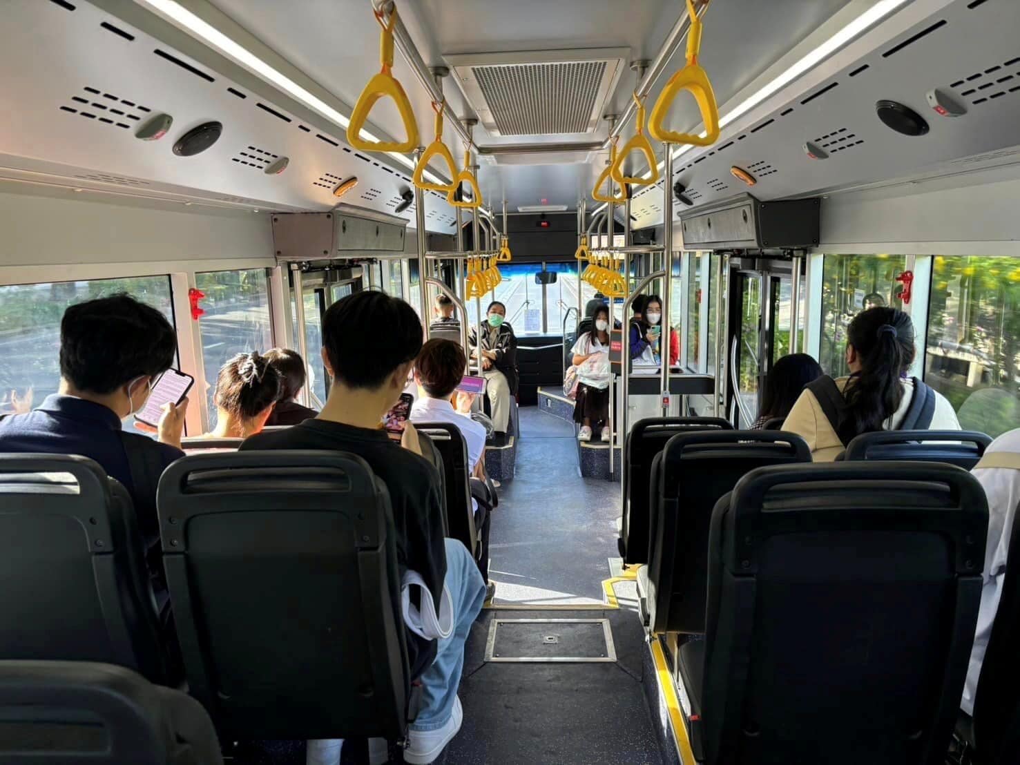 เมื่อวันที่ 1 ก.ย. เพจเฟซบุ๊ก รถไฟฟ้าบีทีเอส ได้ออกมาโพสต์ภาพบรรยากาศการ BRT-EV โฉมใหม่ให้บริการวันแรก ซึ่งมีการให้บริการในเส้นทางสาทร – ราชพฤกษ์ พร้อมทั้งระบุว่า “BRT-EV เป็นรถโฉมใหม่ ขับเคลื่อนด้วยพลังงานไฟฟ้า 100% ภายในรถจะค่อนข้างเงียบ”