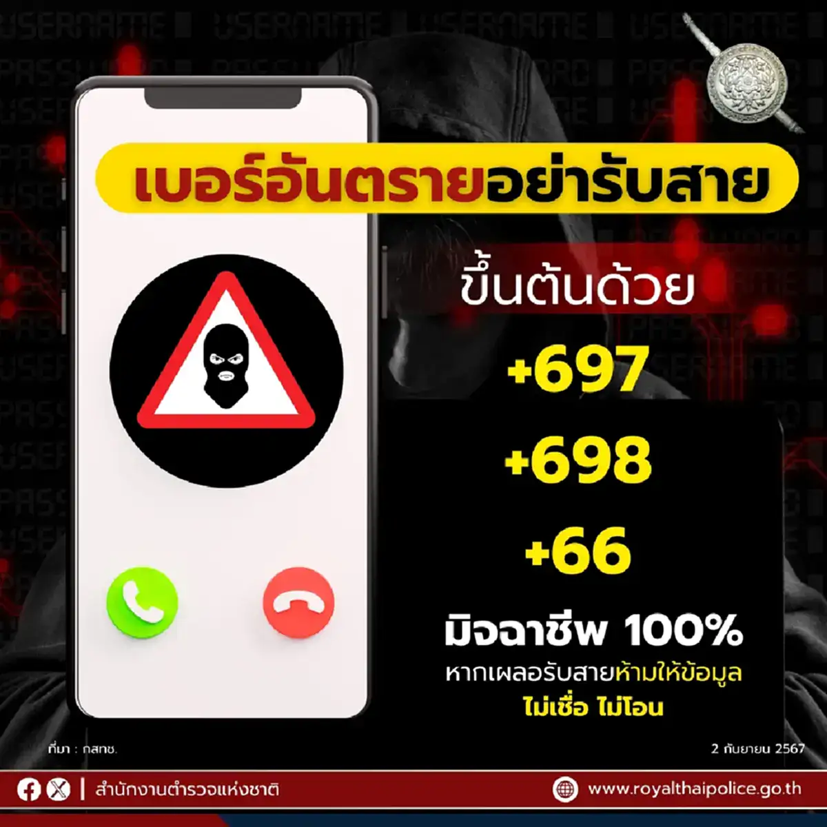 เบอร์อันตราย อย่ารับสายเด็ดขาด เตือนโดย สำนักงานตำรวจแห่งชาติ ได้ออกมาโพสต์ข้อความระบุว่า