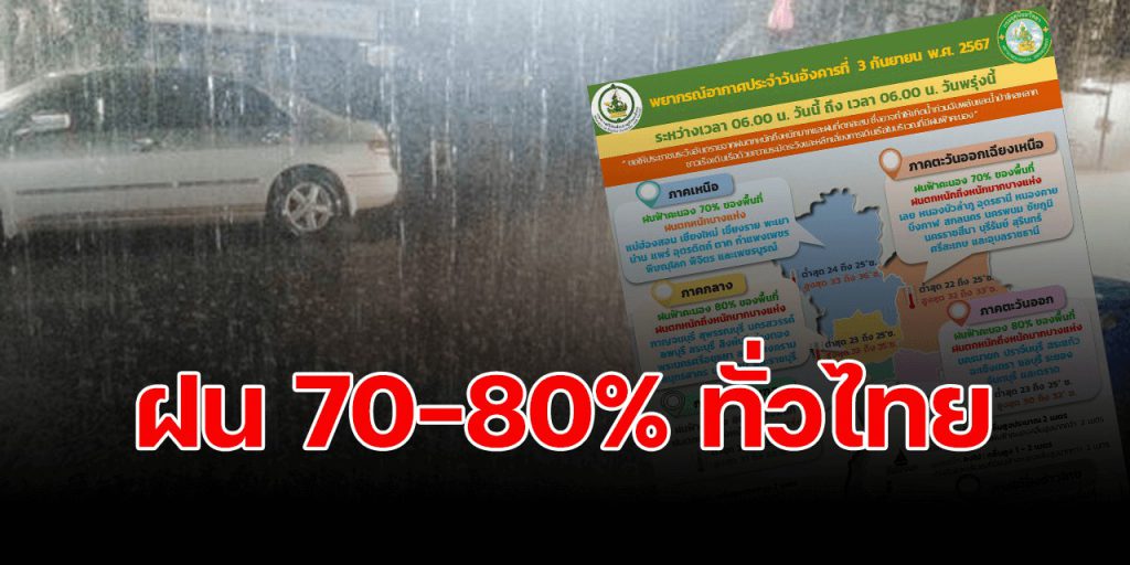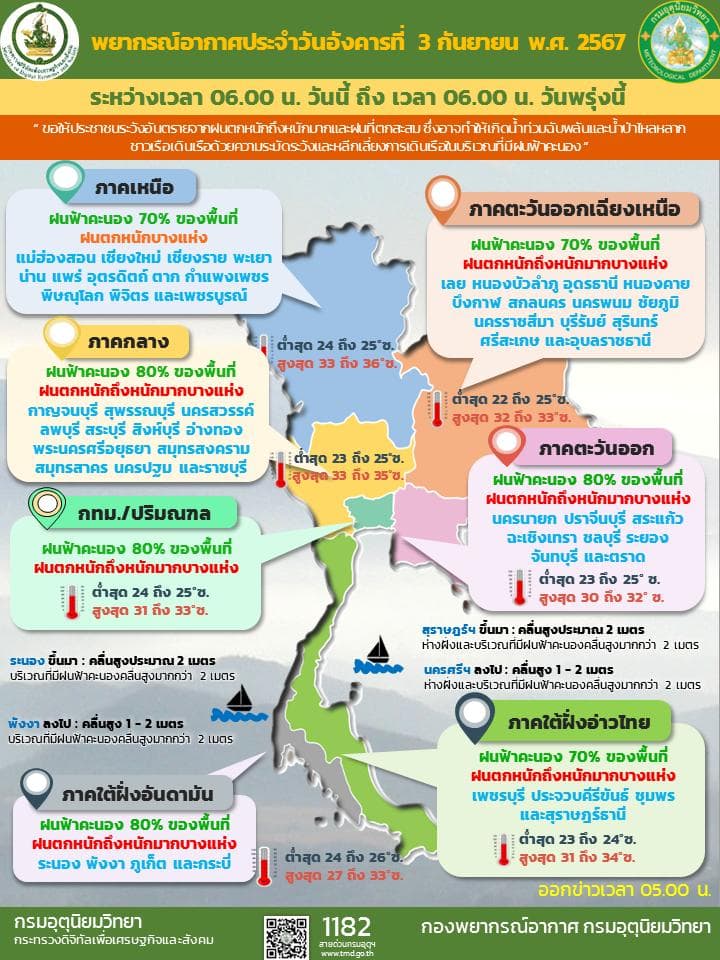 พยากรณ์อากาศสำหรับประเทศไทย 06:00 น. วันที่ 3 ก.ย. ถึง 06:00 น. วันที่ 4 ก.ย.
