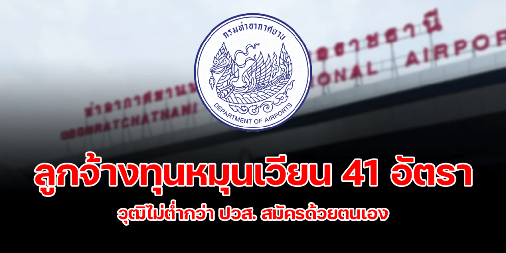 กรมท่าอากาศยาน รับสมัครสอบคัดเลือกบุคคลเพื่อเลือกสรรและจัดจ้างเป็นลูกจ้างทุนหมุนเวียนในตําแหน่งต่าง ๆ ปฏิบัติงานที่ ท่าอากาศยานอุบลราชธานี