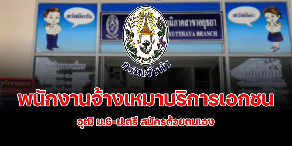ด้วยสํานักงานเจ้าท่าภูมิภาคสาขาอยุธยา กรมเจ้าท่า มีความประสงค์จะรับสมัครบุคคลเพื่อ การจ้างเหมาบริการเอกชน ตําแหน่ง เจ้าพนักงาน พรบ. การเดินเรือ, ตําแหน่ง พนักงานประจําท่าเรือ และ ตําแหน่ง เจ้าหน้าที่บันทึกข้อมูล จํานวนอัตราที่รับจะรับตามที่กรมเจ้าท่าจัดสรรงบประมาณ