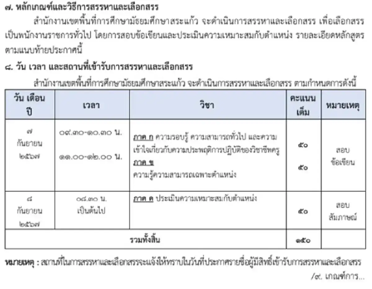- วันที่ 8 กันยายน 2567 สอบภาค ค. ประเมินความเหมาะสมกับตำแหน่ง (สอบสัมภาษณ์) ส่วนนี้ก็จะมีอีก 50 คะแนนการประกาศผล จะประกาศในวันที่ 10 กันยายน 2567 ผู้ที่สอบผ่านจะต้องผ่านทั้ง 3 ภาคที่คะแนนไม่ต่ำกว่าร้อยละ 60