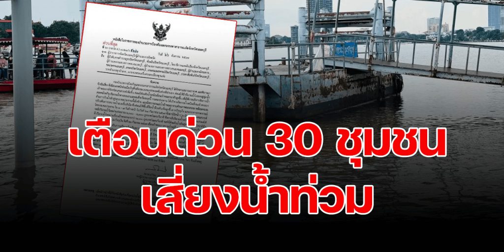 และยังแจ้งเตือนพื้นที่เสี่ยงน้ำล้นตลิ่ง ชุมชนพื้นที่ต่ำนอกคันกั้นน้ำทั้งสองฝั่งแม่น้ำเจ้าพระยา ที่ได้รับผลกระทบเมื่อระดับน้ำในแม่น้ำเจ้าพระยามีปริมาณสูงขึ้น โดยแบ่งออกเป็นพื้นที่ 30 จุดเสี่ยงดังนี้