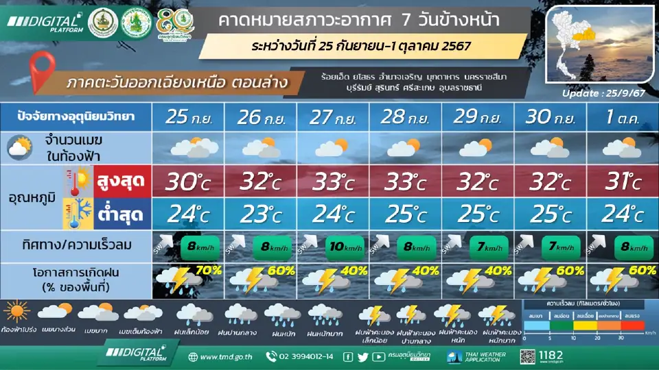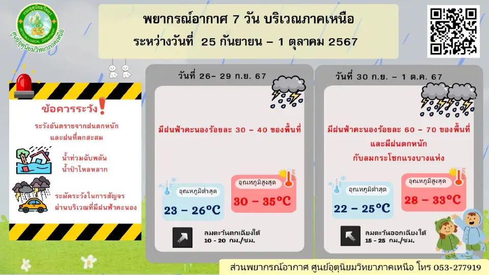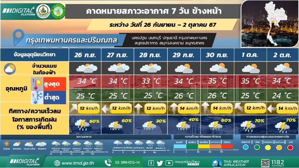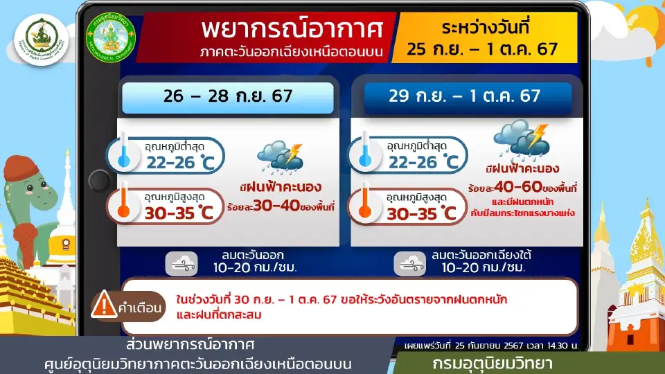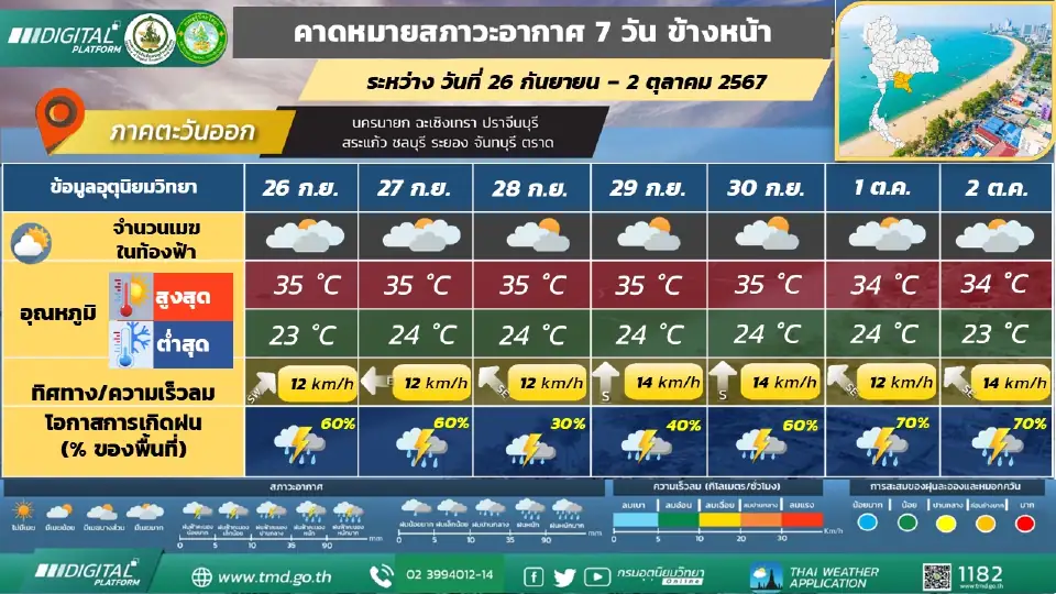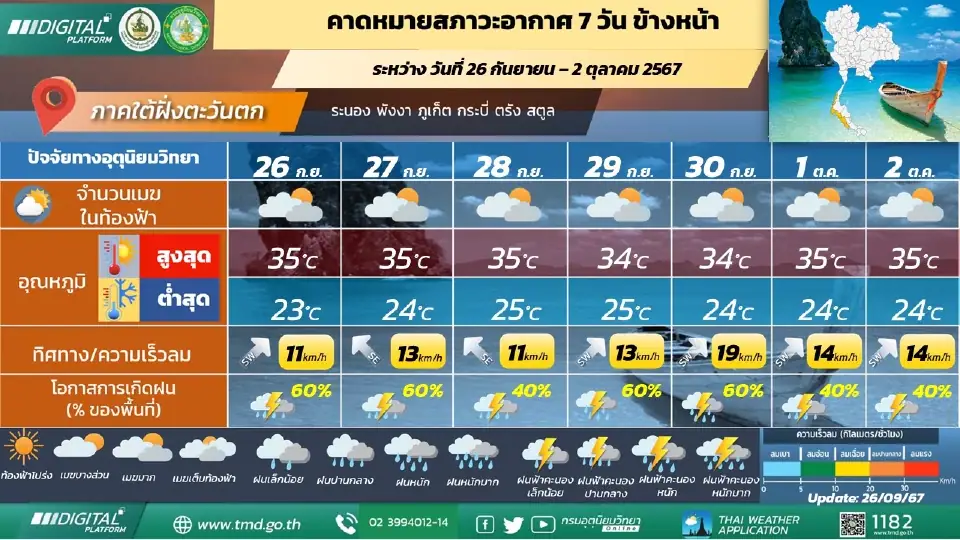 กรมอุตุนิยมวิทยา คาดหมายอากาศรายภาค ระหว่างวันที่ 26 กันยายน – 2 ตุลาคม พ.ศ. 2567