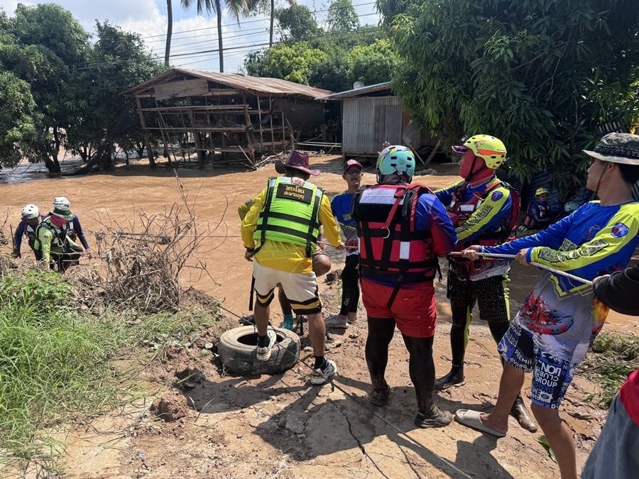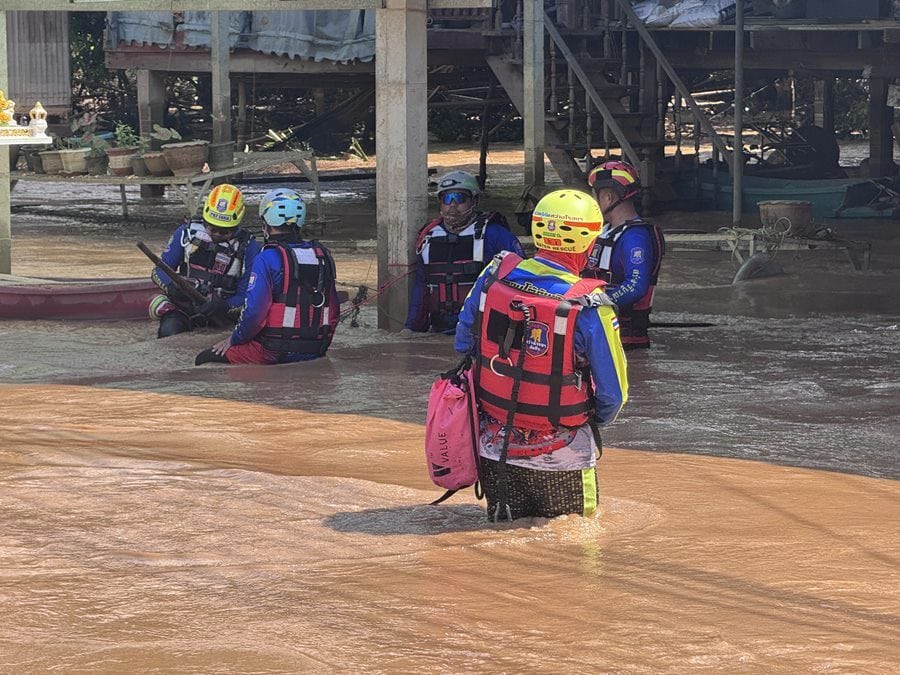 ขณะที่เจ้าหน้าที่ทีมกู้ภัยยังฝ่ากระแสน้ำกลางชุมชน ช่วยเหลือประชาชน โดยเฉพาะบางพื้นที่สูงเกือบ 2 เมตร กระแสน้ำไหลเชี่ยวจนซัดถนนขาด ไม่สามารถเดินทางเข้า-ออกพื้นที่ได้