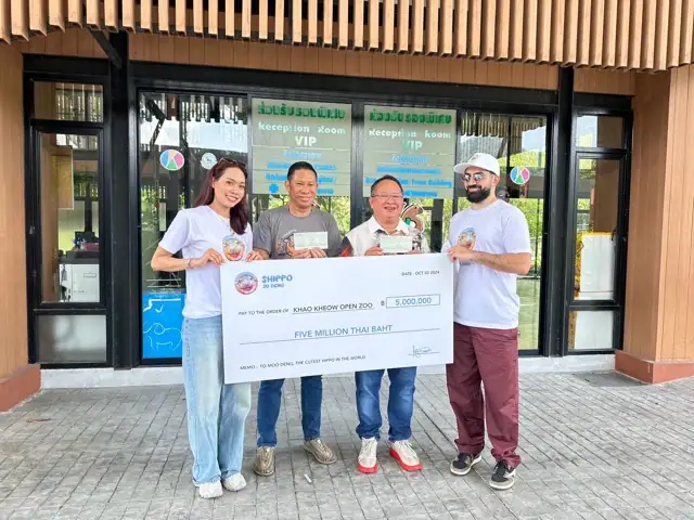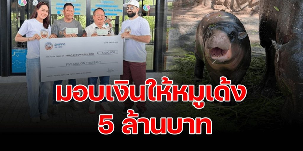 ล่าสุด เมื่อวานนี้ 5 ต.ค. ได้รับประสานจากกลุ่มนักธุรกิจดูไบ จาก $Hippo team ได้เดินทางมามอบเงินให้หมูเด้ง เป็นเงินจำนวน 5 ล้านบาท เพื่อสนับสนุนภารกิจของสวนสัตว์