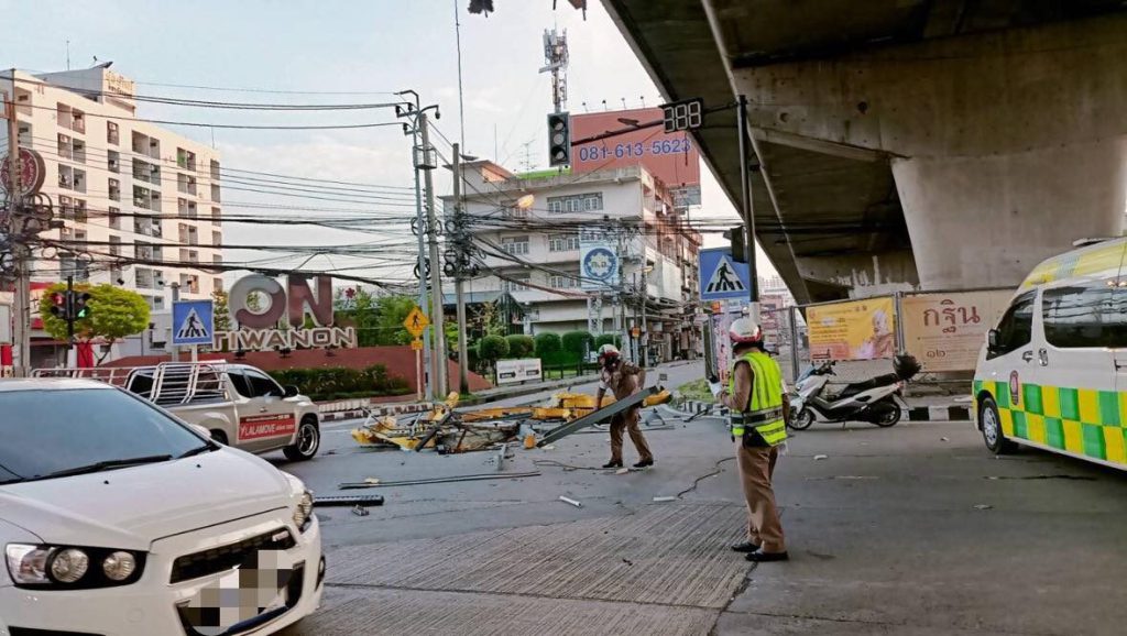 7 ตุลาคม เพจ “JS100 Radio” รายงานว่า เวลา 07.17 น. ถนนติวานนท์ (ถ.306) ขาออก บริเวณกลางแยกติวานนท์ มีป้ายขนาดใหญ่หล่น การจราจรเคลื่อนตัวช้า รถติด ได้ประสานงาน สภ.เมืองนนทบุรี รับแจ้งแล้ว อยู่ระหว่างประสานงานเทศบาลนครนนท์ มาดำเนินการ
