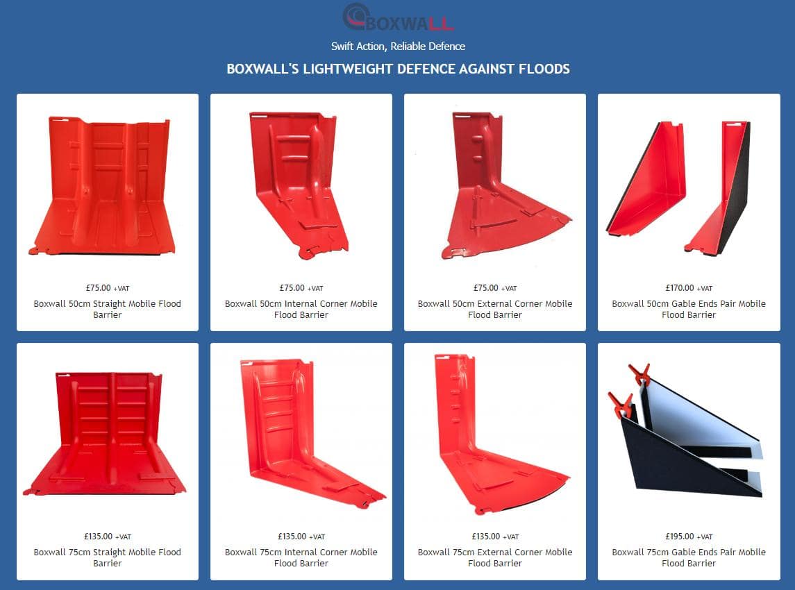 Boxwall เป็นนวัตกรรมของบริษัทอังกฤษ Boxwall Flood Control International ซึ่งนำเสนอโซลูชันการป้องกันน้ำท่วมที่มีประสิทธิภาพ น้ำหนักเบา และปรับเปลี่ยนได้ตามสถานการณ์ให้กับผู้ใช้