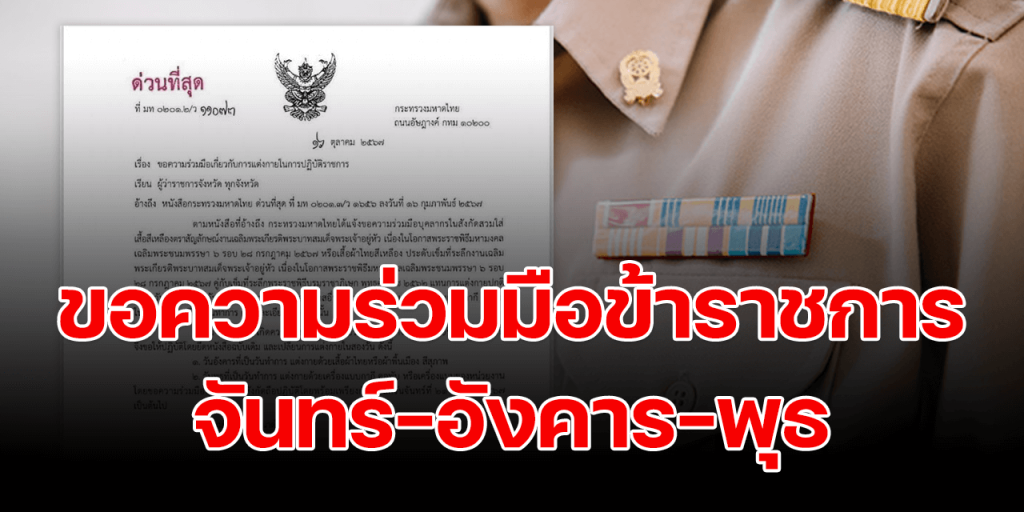 โดยขอความร่วมมือบุคลากรในสังกัดถือปฏิบัติโดยพร้อมเพรียงกัน ตั้งแต่วันจันทร์ที่ 21 ตุลาคม 2567 เป็นต้นไป