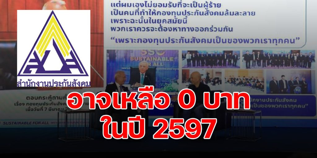 หากปรับตัวไม่ทัน ยังทำงานเหมือนที่ผ่าน ๆ มา เงินกองทุนประกันสังคมที่คาดการณ์กันว่าจะมากสุดในปี 2585 อยู่ที่ 6 ล้านล้านบาทจะเริ่มลดลงเรื่อย ๆ และจะเหลือ 0 บาทในปี 2597 หากไม่มีมาตรการปรับเปลี่ยน” นายพิพัฒน์ กล่าว