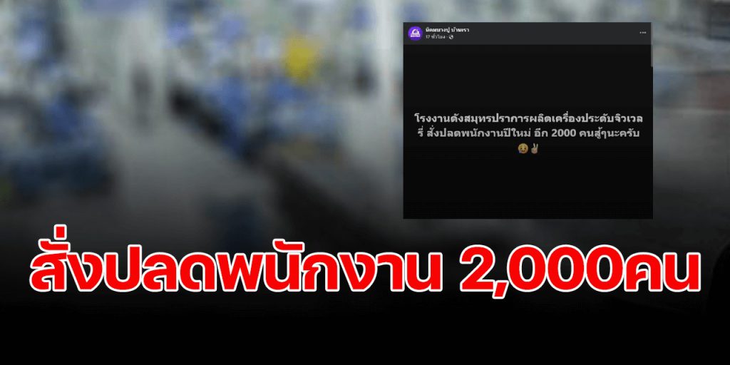 ช่วงใกล้สิ้นปีแบบนี้หนึ่งสิ่งที่มนุษย์เงินเดือนทั้งหลายคาดหวัง ก็คือการได้รับจะได้โบนัส แต่ล่าสุด พนักงานของโรงงานดังสมุทรปราการ ผลิตเครื่องประดับจิวเวลรี่ ได้รับข่าวร้ายถูกสั่งปลด 2,000 คน