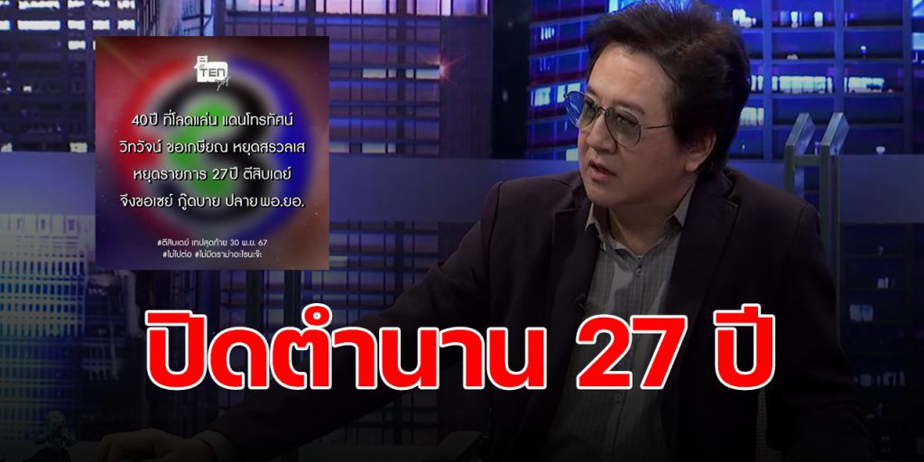 โดยมีข้อความระบุว่า 40 ปี ที่โลดแล่น แดนโทรทัศน์ วิทวัจน์ ขอเกษียณ หยุดสรวลเส หยุดรายการ 27 ปี ตีสิบเดย์ จึงขอเซย์ กู๊ดบาย ปลาย พอ.ยอ. #ตีสิบเดย์ เทปสุดท้าย 30 พ.ย. 67 #ไม่ไปต่อ #ไม่มีดราม่าอะไรนะจ๊