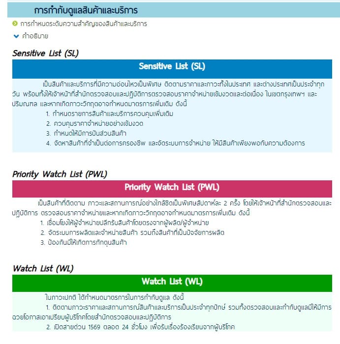 โดยสินค้าควบคุม ที่อยู่ในระดับ Sensitive List มีทั้งหมด 17 รายการ (ข้อมูล ณ เดือนตุลาคม 2567) ดังนี้