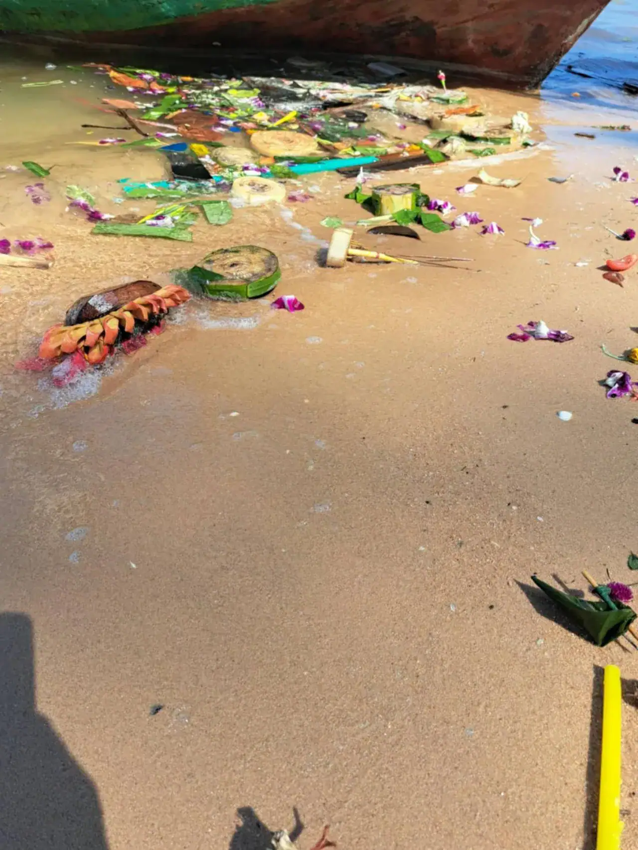 นักท่องเที่ยวที่มาเที่ยวชายหาดเปิดเผยว่าได้ช่วยเก็บขยะกระทง โดยจากที่ได้เก็บขยะพบว่าวัสดุที่ทำกระทงนั้นย่อยสลายยาก มีทั้งหมุดเข็มกลัดเต็มไปหมด ซึ่งหน่วยงานที่เกี่ยวข้องน่ามีการจัดการให้ดีกว่านี้