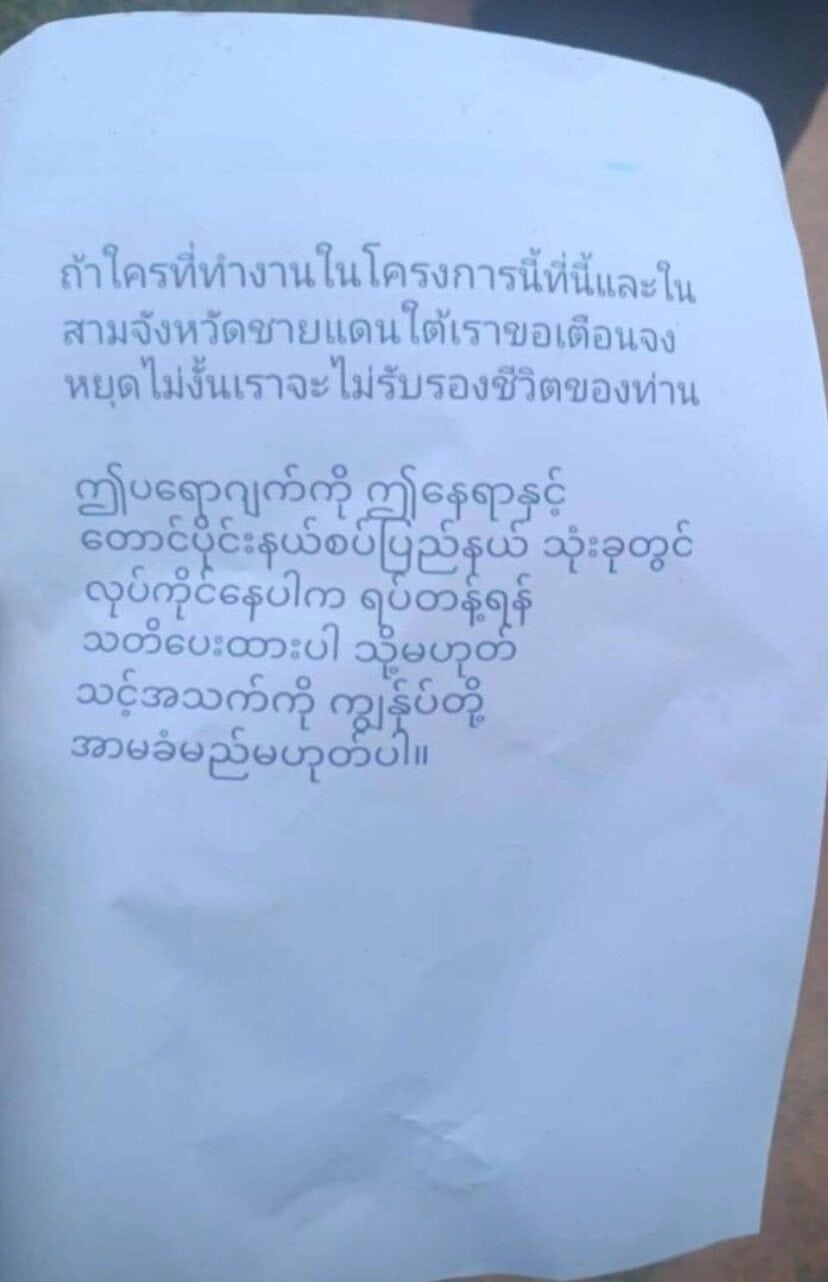 วันที่ 20 พฤศจิกายน เกิดเหตุการณ์ความไม่สงบในพื้นที่ จ.ยะลา ทั้งนี้ ยังได้พบข้อความ 2 ภาษาความว่า “ถ้าใครที่ทำงานในโครงการนี้ ที่นี่ และในสามจังหวัดชายแดนใต้ เราขอเตือน จงหยุดไม่งั้นเราจะไม่รับรองชีวิตของท่าน” สำหรับเหตุการณ์ทั้งหมดมีดังนี้