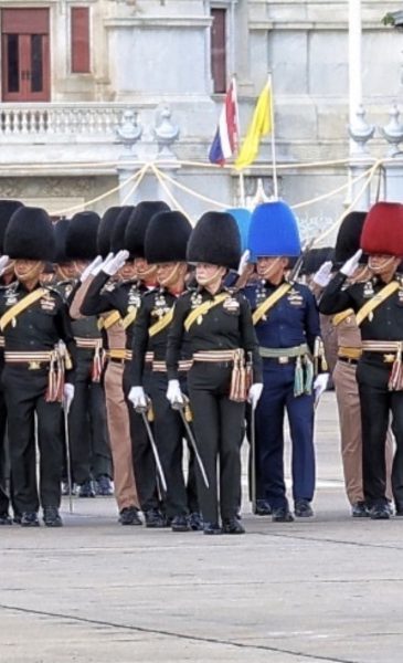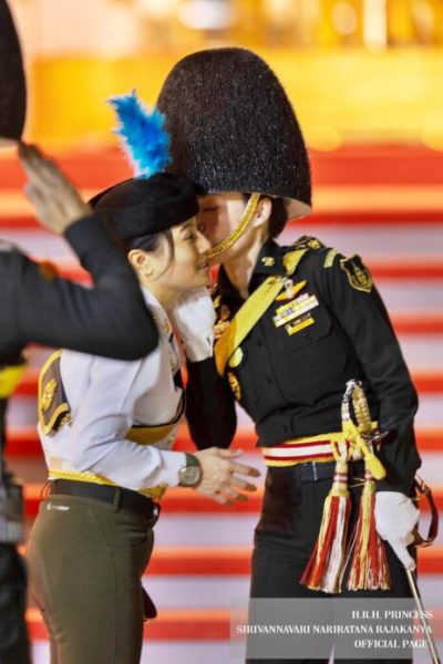 โดยระบุว่า พลเอกหญิง สมเด็จพระนางเจ้าสุทิดา พัชรสุธาพิมลลักษณ พระบรมราชินี พร้อมด้วย พลเอกหญิง สมเด็จพระเจ้าลูกเธอ เจ้าฟ้าสิริวัณณวรี นารีรัตนราชกัญญา ระหว่างทรงพักซ้อมพิธีการสวนสนามและถวายสัตย์ปฏิญาณตนของทหารรักษาพระองค์