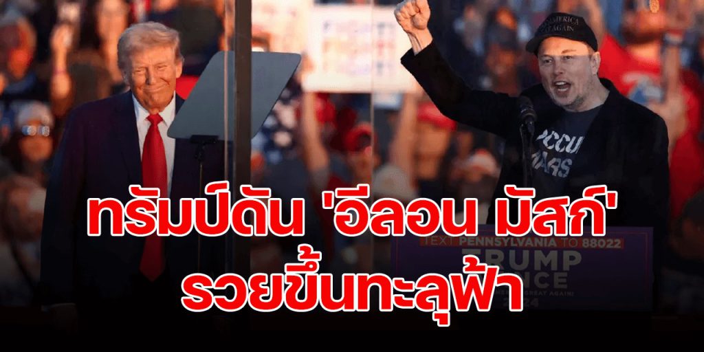 รายงานระบุว่า มูลค่าธุรกิจจำนวนมากของมัสก์พุ่งสูงขึ้นนับตั้งแต่ “โดนัลด์ ทรัมป์” ชนะการเลือกตั้งเมื่อวันที่ 5 พ.ย. ทำให้มัสก์ซึ่งถูกเรียกว่า “คู่หูคนแรก” ของทรัมป์ได้รับความสนใจทางการเมือง