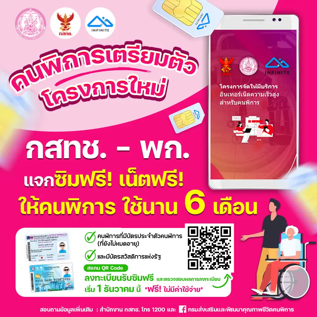 โดยความร่วมมือดังกล่าวมีวัตถุประสงค์ เพื่อส่งเสริมโอกาสการเข้าถึงอินเทอร์เน็ต สำหรับการเรียนรู้และพัฒนาตนเองตามศักยภาพ โดยร่วมกันดำเนิน”โครงการจัดให้มีบริการอินเตอร์เน็ตความสำหรับ คนพิการ” จำนวน 1,100,000 คน และ ”โครงการอินเทอร์เน็ตสำหรับนักเรียนยากจนพิเศษ” จำนวน 357,000 คน ทั่วประเทศไทย โดยจะเปิดให้เริ่มลงทะเบียน รับสิทธิ์ และเช็คสิทธิ์ ทั้งสองโครงการ ตั้งแต่วันที่ 1 ธ.ค.67 เป็นต้นไป ที่ลิงค์ระบบลงทะเบียน เช็คสิทธิ รับซิม)