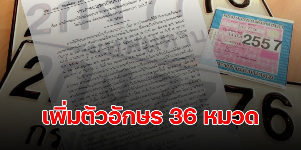 ประกอบกับคณะอนุกรรมการพิจารณาตัวอักษรประจําหมวดที่ใช้กับแผ่นป้ายทะเบียนรถที่มีลักษณะพิเศษ สําหรับรถยนต์นั่งส่วนบุคคลไม่เกินเจ็ดคน ในคราวการประชุมครั้งที่ ๒/๒๕๖๗ เมื่อวันที่ ๒๓ กรกฎาคม พ.ศ. ๒๕๖๗ ได้พิจารณาแล้ว มีมติเห็นชอบให้ใช้ตัวอักษรประจําหมวดเพิ่มเติมจํานวน ๓๖ หมวด