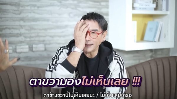 ถามว่าใช้ชีวิตยังไง พระเอกตลอดกาล ตอบว่า “ไม่ขับรถ กลางคืนไม่ค่อยออกไปไหน เพราะมันไม่มีมิติ เหลือตาข้างเดียว มันจะมองเป็นพื้นดำ ถ้าไฟไม่พอ แสงไม่พอ ตอนแรกมันเครียด ถ้าเราตาบอดไปอะไรจะเกิดขึ้นบ้าง แล้วลูกเรายังเรียนไม่จบ จะมีปัญหาตามมา เราไม่อยากเป็นภาระใคร ก็คิดสั้นๆ แบบหลายคนคิดกัน มันไม่ถีงซึมเศร้า แต่เครียดหาคำตอบให้อนาคตเด็กๆ เขา”