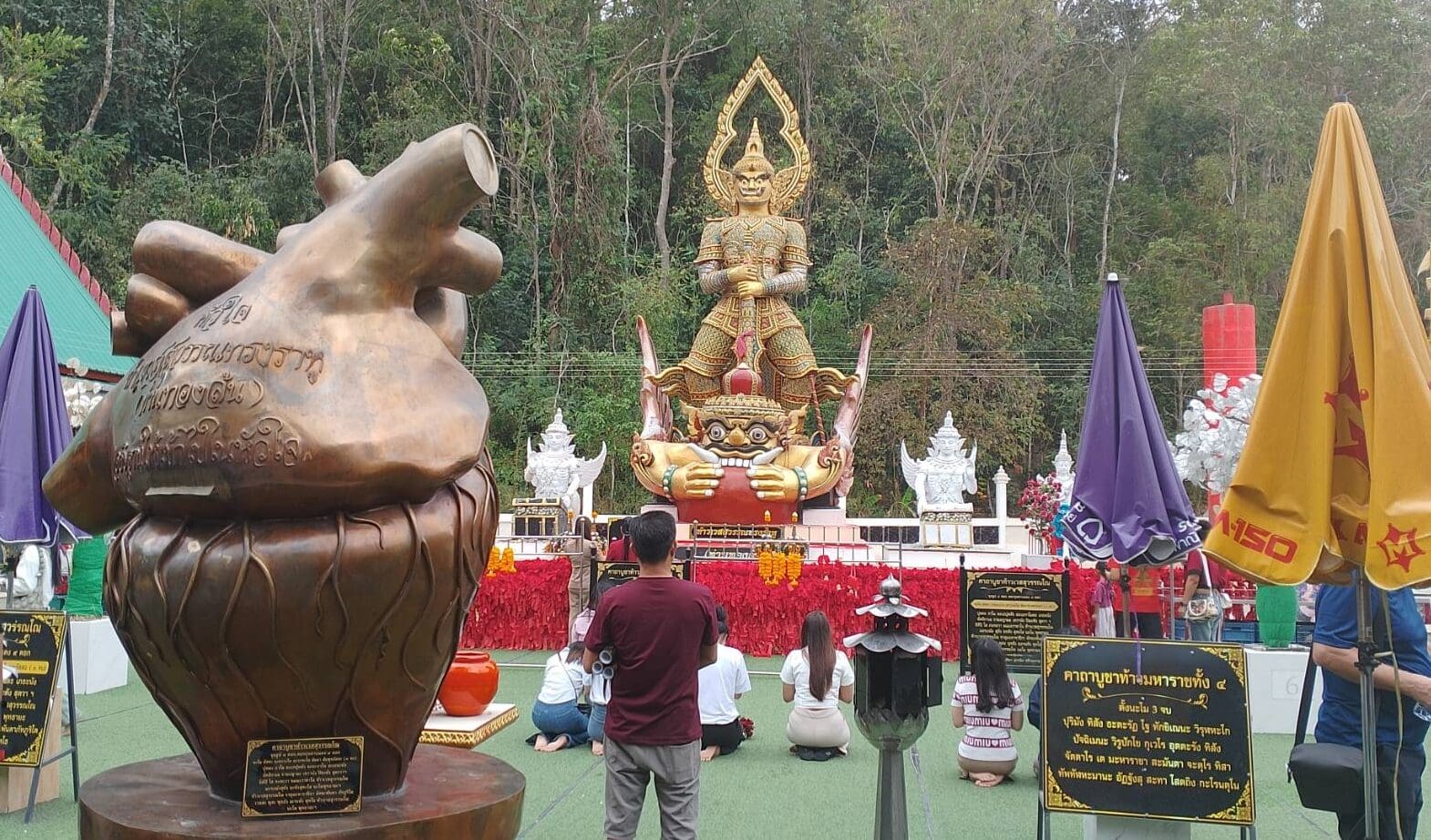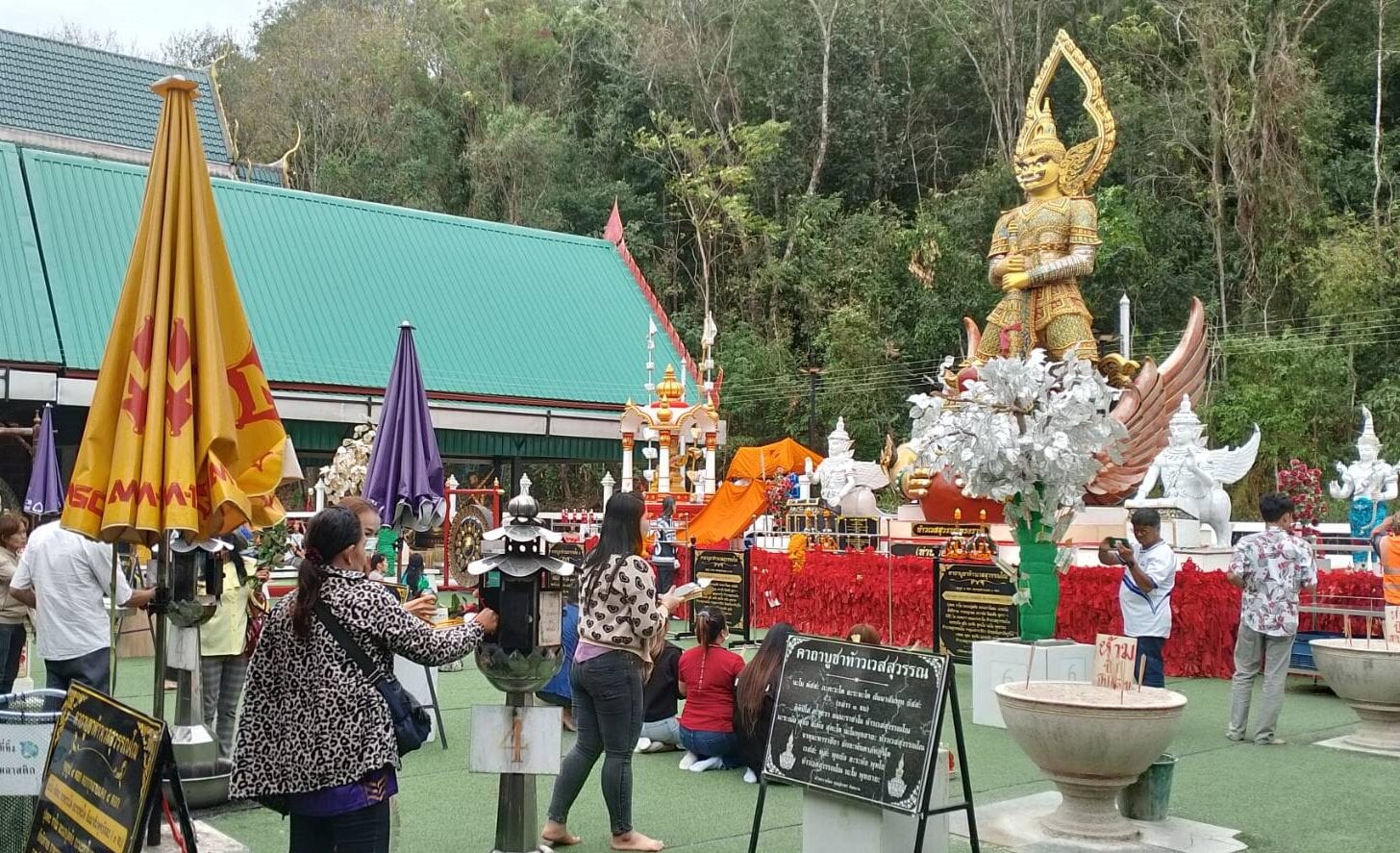 เช่นเดียวกับ คนที่ศรัทธา ได้พากันทยอยเดินทางมากราบไหว้ ท้าวเวสสุวรรณทรงราหู (ท่านทองล้น) องค์ใหญ่สูง 9.9 เมตร ที่ตั้งอยู่ริมอุโบสถด้านหน้าเขาช่องลม กันอย่างเนืองแน่น หวังขอโชคลาภเลขเด็ด