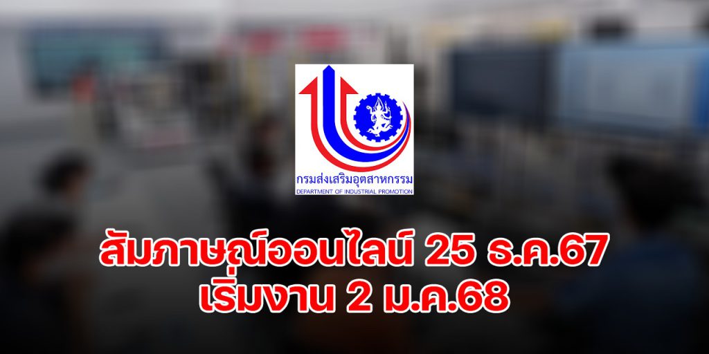 กรมส่งเสริมอุตสาหกรรม รับสมัครพนักงานจ้างเหมาบริการ ตำแหน่งเจ้าหน้าที่ปฏิบัติงานด้าการพัฒนาอุตสาหกรรม ป.ตรีทุกสาขา เงินเดือน 15,000 บาท รับสมัครบัดนี้-24 ธ.ค.67 สัมภาษณ์ออนไลน์ 25 ธ.ค.67 เริ่มงาน 2 ม.ค.68
