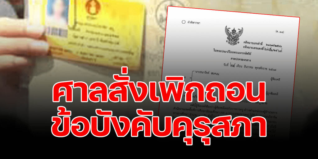 พร้อมกับพิพากษาเพิกถอนข้อบังคุบคุรุสภา ว่าด้วยใบอนุญาตประกอบวิชาชีพ พ.ศ. 2564