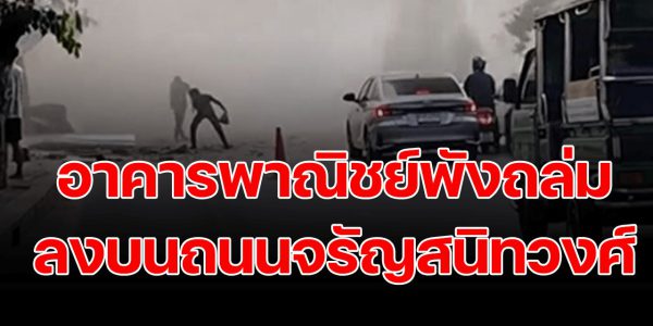 อาคารพาณิชย์ กำลังรื้อถอน พังถล่ม ลงมาบน ถนนจรัญสนิทวงศ์