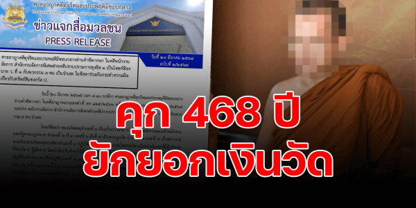 ศาลจำคุก อดีตพระคม 468 ปี ทุจริตฯยักยอกเงินวัด