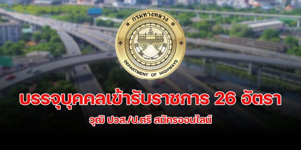 กรมทางหลวง รับสมัครสอบบรรจุบุคคลเข้ารับราชการ 26 อัตรา วุฒิ ปวส./ป.ตรี 8-29ส.ค.67