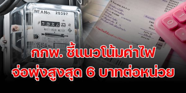 กกพ. ชี้แนวโน้มค่าไฟ พุ่งสูงสุด 6 บาท/หน่วย งวด ก.ย.-ธ.ค.67