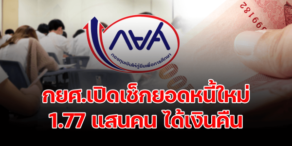 1 ส.ค. กยศ.เปิดเช็กยอดหนี้ใหม่ 2.98 ล้านรายได้ประโยชน์ 1.77 แสนคน ได้เงินคืน