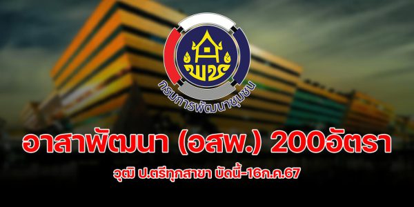 กรมการพัฒนาชุมชน รับสมัครสอบคัดเลือกเป็นอาสาพัฒนา (อสพ.) 200 อัตรา วุฒิ ป.ตรีทุกสาขา บัดนี้-16ก.ค.67