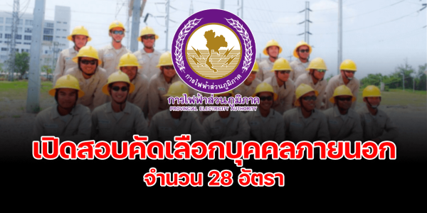 กฟภ. รับสมัครสอบคัดเลือกจากบุคคลภายนอกเพื่อเข้าปฏิบัติงาน วุฒิ ปวส.-ป.ตรี จำนวน 28 อัตรา บัดนี้- 21ส.ค.67
