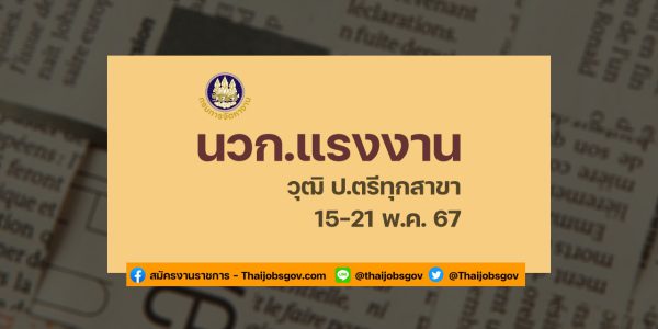 กรมการจัดหางาน รับสมัครนักวิชาการแรงงาน วุฒิ ป.ตรีทุกสาขา เงินเดือน 18,000 บาท 15-21พ.ค.67
