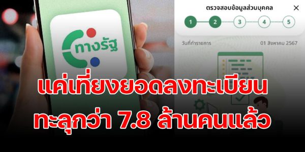 แค่เที่ยง ทะลุกว่า 7.8 ล้านคนแล้ว ยอดลงทะเบียนผ่าน ทางรัฐ