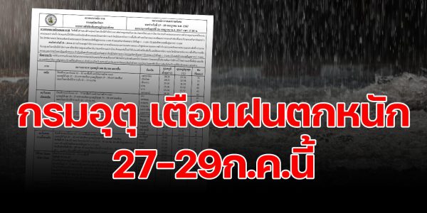 กรมอุตุฯ เตือน หลายภาคฝนหนัก ตั้งแต่ 27-29 ก.ค.นี้