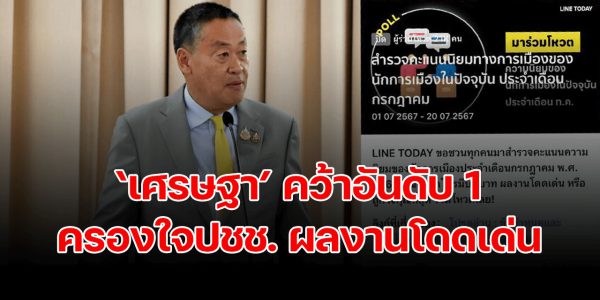 เปิดผลโพล LINE TODAY ‘เศรษฐา’ คว้าอันดับ 1 ผลงานโดดเด่น ครองใจประชาชน